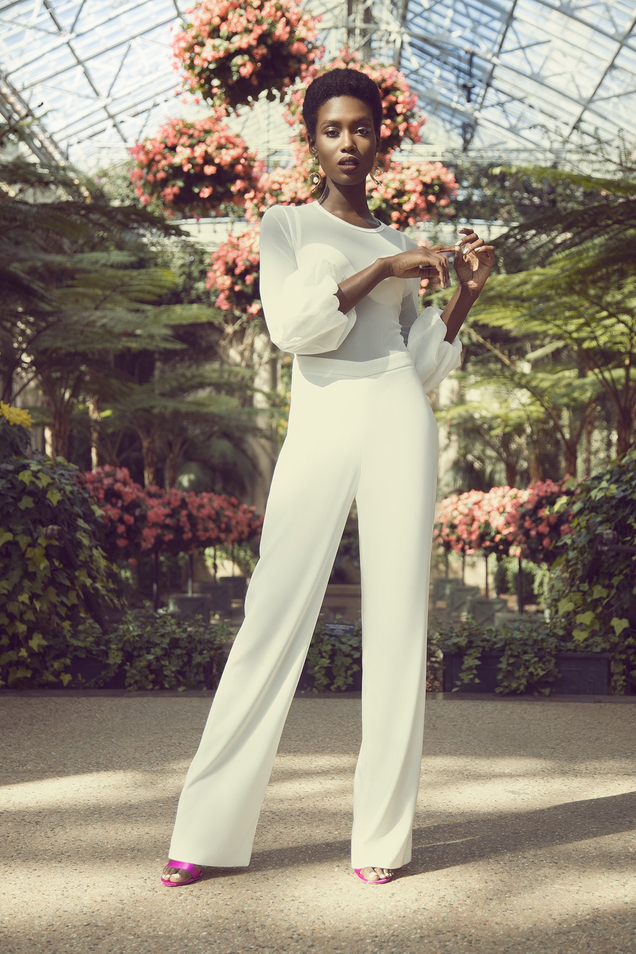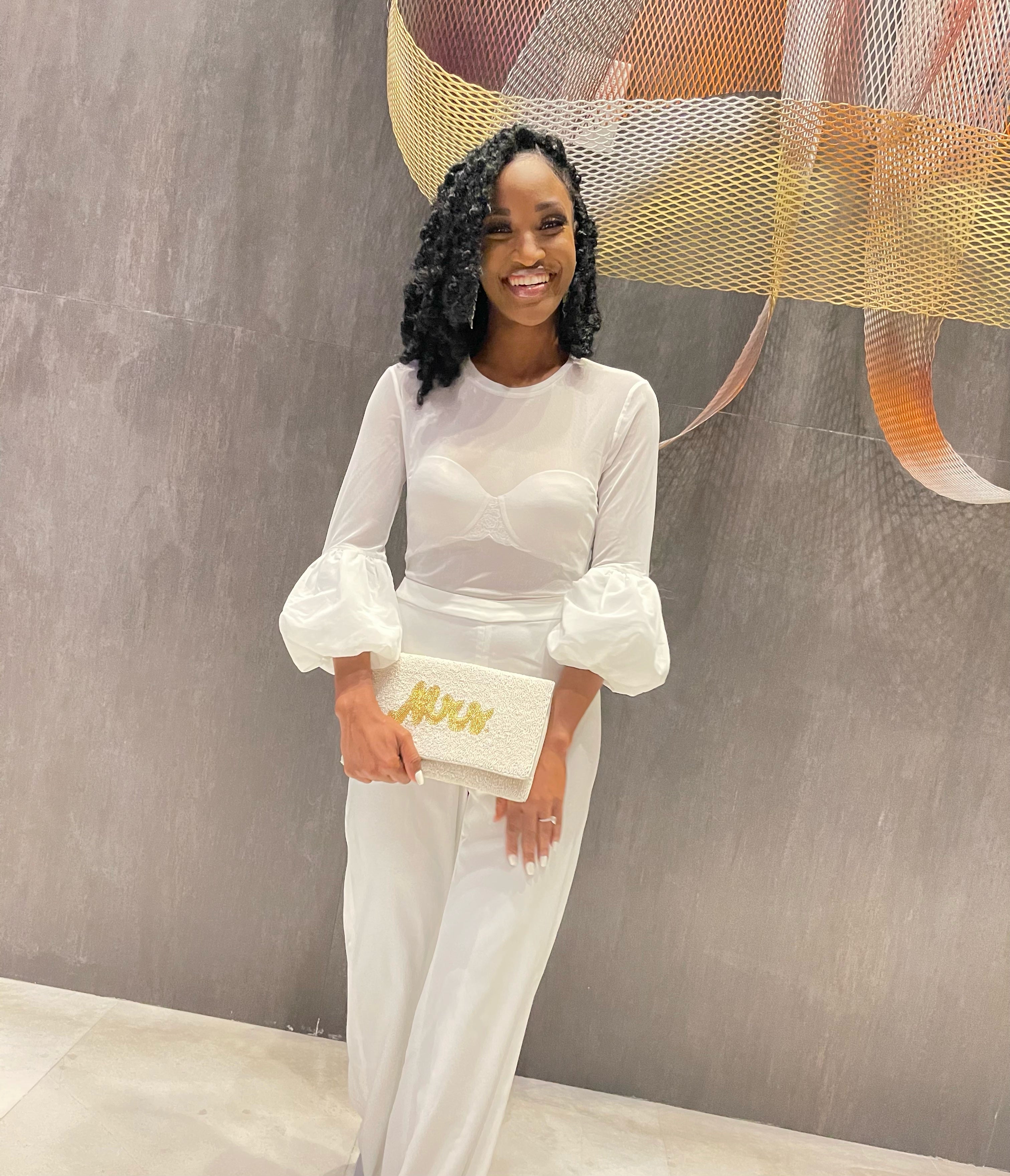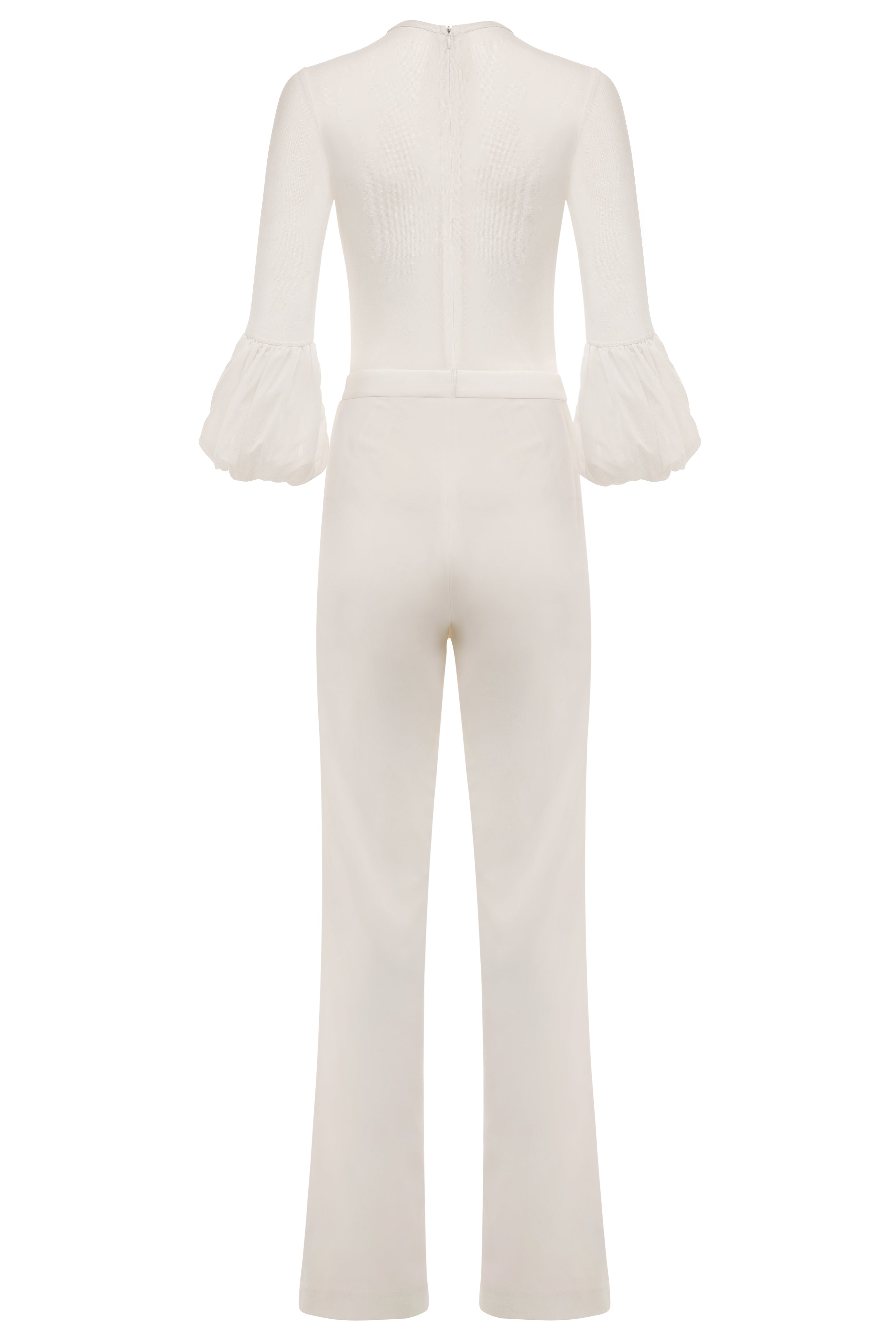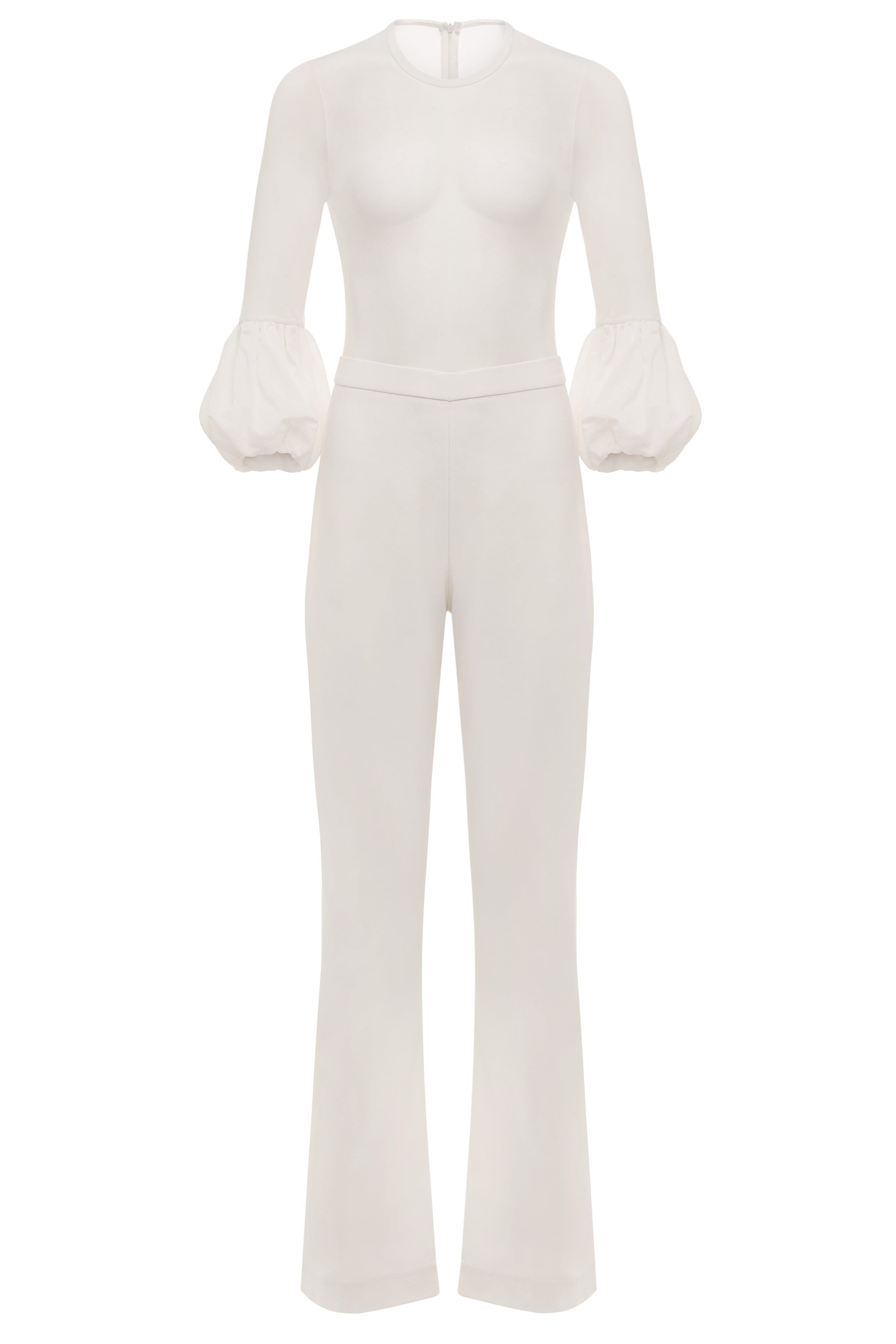 The Shane is a timeless bridal jumpsuit and wardrobe staple that can be worn for years after the engagement party. This best-seller is made of stretch polyester crepe and stretch mesh. Shane has a high waist to elongate the leg and a 3/4 length puff sleeve. The top is lightweight sheer stretch mesh. The perfect complement to your wardrobe, slip this stylish jumpsuit on with the most fabulous statement earrings, and you win the night.
